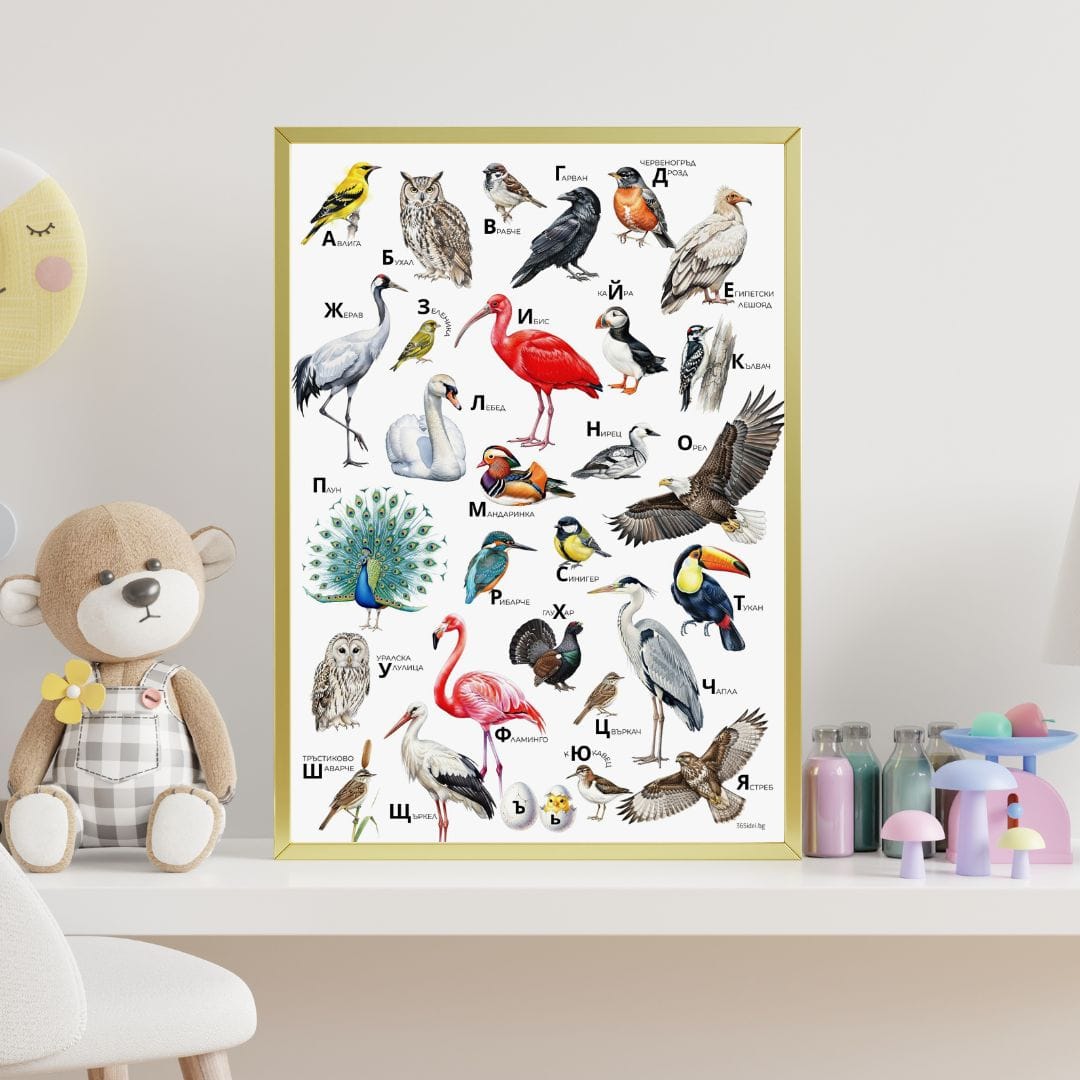 Любими български птици и някои екзотични представители оформят азбуката на пернатите.